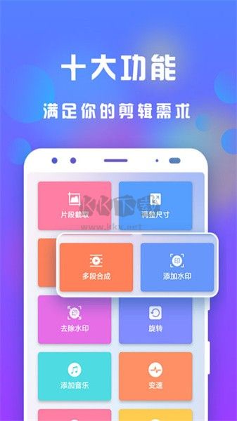4、同时可以对视频进行编辑,功能包含了:去水印、视频尺寸任意剪裁、视频转Gif动图、视频旋转、快慢放、视频压缩、视频分割、片段组合、添加文字、增加音乐等功能。