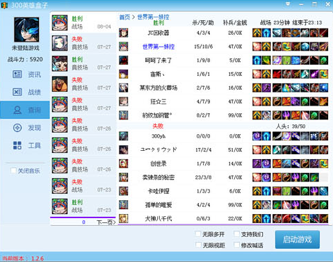 本站为您提供300英雄盒子2021官方下载,300英雄盒子是针对游戏《300英雄》的一款使用辅助工具,软件提供了300英雄游戏战绩查询功能,玩家可以在对局时查询队友或对手的战绩,方便更好的调整对局思路。此外300英雄盒子中还提供了无限视距、英雄换肤等实用功能,可以给用户更加出色的游戏体验。KK下载站为您提供300英雄盒子 v4.0.6 官方最新版下载,玩300英雄的朋友赶紧下载使用吧!