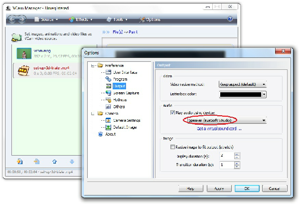 选择[扬声器(e2eSoft VAudio)]作为VCam中的默认声音播放设备,并播放视频: