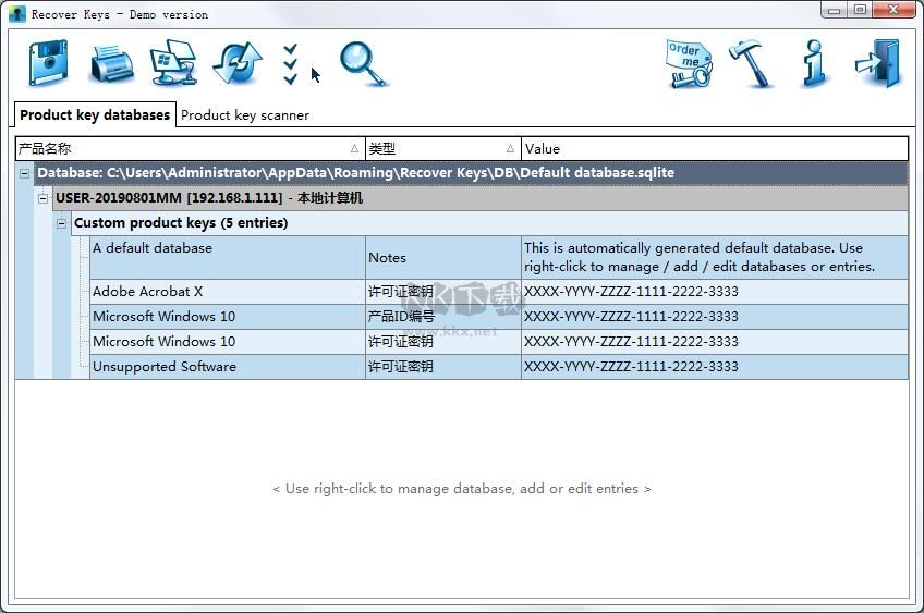 《Recover Keys》是一款非常实用的秘钥恢复软件,这款软件的主要作用是在系统或硬盘崩溃的情况下,专门用于保护安装在您本地或者远程计算机上的软件产品的激活密钥,同时还可以储存、备份数据、打印出导出来许可证书信息内容,无论是专业人士还是没有经验的用户都能够在这款软件中自如地使用密钥恢复软件,有需要的用户们赶紧来下载安装吧!
