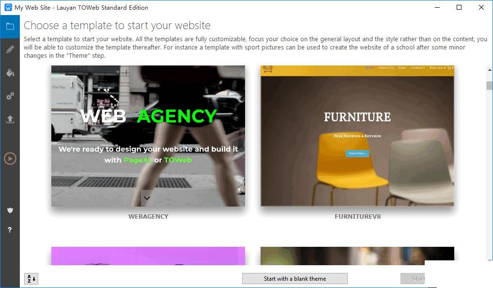 - 改进的网站创建向导,其中包含新的选项,并且可以选择以基本模板和空白主题快速启动