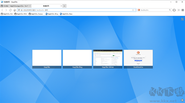 QupZilla支持快速拨号功能,快速进入您喜爱的网站。支持拖拉、删除操作;