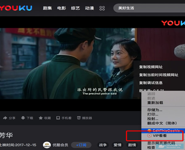 vip看看插件是一款适用于浏览器中使用的免费观看各种影视大片的vip视频播放器插件,支持优酷、土豆、腾讯视频、爱奇艺、搜狐视频等多家主流视频网站,无广告,不收费,免费观看影视大片。使用简单,只需要打开需要观看的影片界面单击鼠标右键,选择vip看看即可免费看!