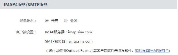 新浪邮箱,登录后选择“设置”,进入“帐户”页面,开启POP3 /SMTP、IMAP4/SMTP服务,保存修改