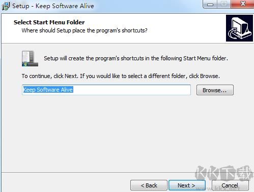 3.点击“Browse”选择开始菜单文件夹,单击Next