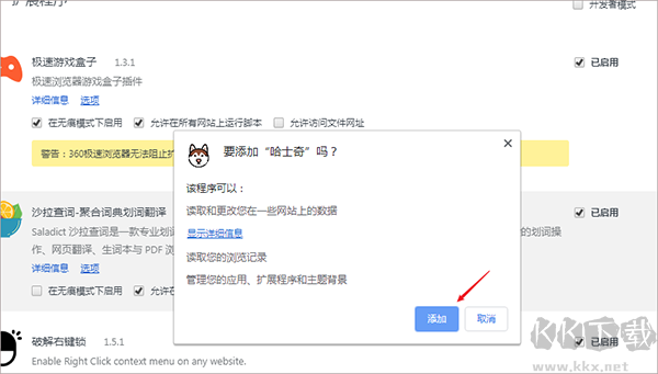 --手动启用插件:进入浏览器扩展管理页→开启哈士奇插件开关