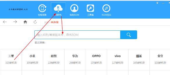 5、打开软件后选择线刷包,输入手机型号或直接选择需要刷入的rom