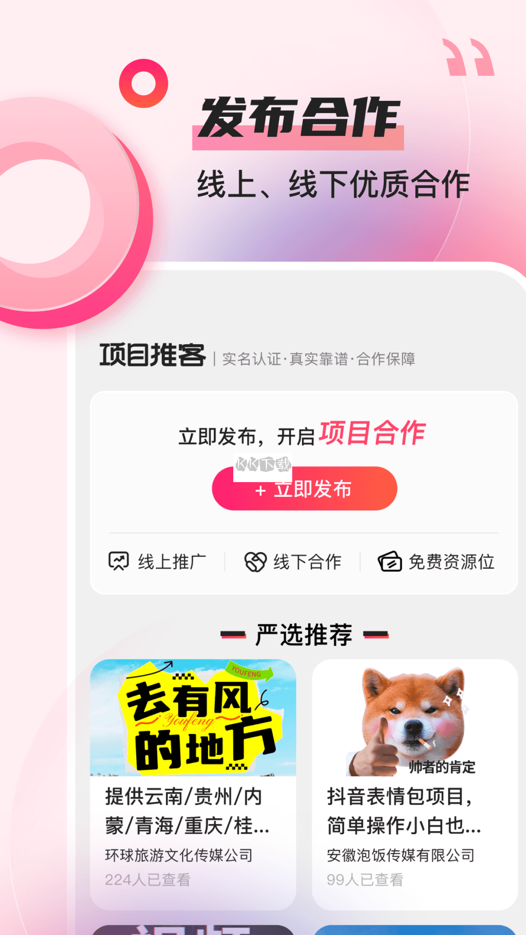 、项目推客官方最新版是一款专门为用户们打造的工作项目和客户资源管理软件,可以很好的满足用户们的办公需求,在项目推客官方最新版用户们只需要填写项目的内容就会有客户上门进行咨询了,给用户们解决了在工作上的超多难题,感兴趣的用户快来KK下载体验吧~