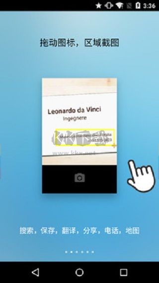 设置好了,退到桌面。这时候会在桌面出现了个圆圈,就是fooview图标。按住这个图标往任何的位置一拉,我们看到会出现个方框是红色的。这时候不会截图,稍微等待它变成黄色然后拖动位置即可截图。如果你的图中有文字,那么等你松开fooview图标就会被提取出来。然后根据自己的需要选择相应的选项即可。