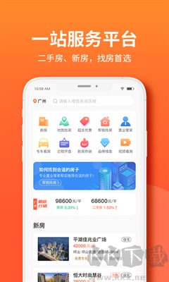 3、找新房.查房价.地图找房.电话咨询,可查看楼盘户型图.实景图等信息,买房看房多选择。
