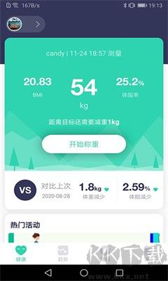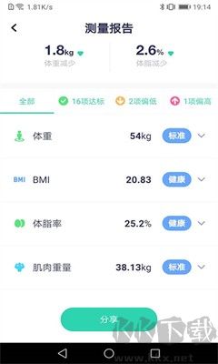品麦云康连接专业的同品牌系列体重秤进行使用,可以有效的观察到用户的体制含量,肌肉率,体脂率等多达数十项指数,从而推断出用户的健康状况,针对结果进行专业的分析,为您制定各种健身,减肥,健康方案,不仅可以帮助用户记录自己的每一次运动过程,还能为你展示最全面的身体数据信息,欢迎到本站下载体验!