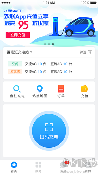 致联新能源app是一款专为新能源车主打造的服务软件,这款软件内为用户提供了非常便捷的充电服务功能,界面也非常的简洁,里面还为用户提供了精准的定位功能,可以帮助用户轻松搜索到周围的充电桩,感兴趣或者有需要的小伙伴就快来kk网站下载体验一下吧。
