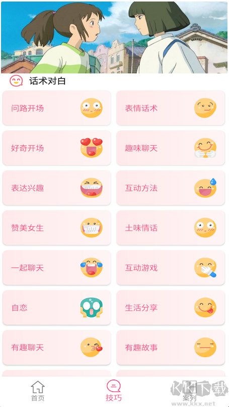 3、聊天话术助手,一款可以帮你解决交往过程中没有话题,尬聊的app,在这里,我们为您提供了海量有趣的聊天技巧,约会技巧,你再也不用感觉聊天很枯燥无味啦。