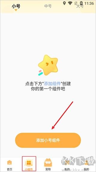 1、打开软件后,点击小组件,再点击添加小号组件。