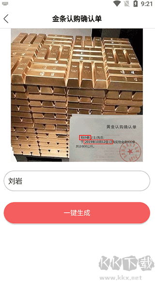 3、小编这边给大家举个例子,例如这个金条确认认购单,可以把名字换成你的。