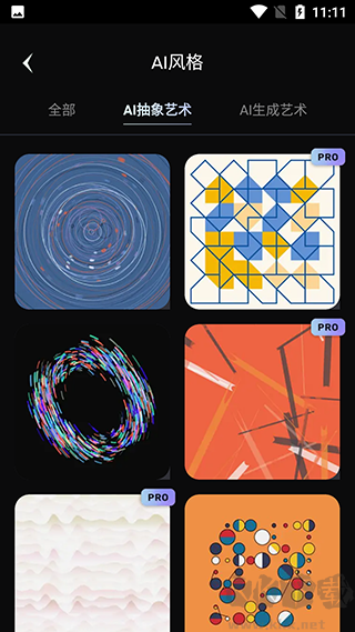 4、返回首页,点击中心六边形图案进入设置,选择 AI 风格抽象艺术,自定义图形与颜色参数。