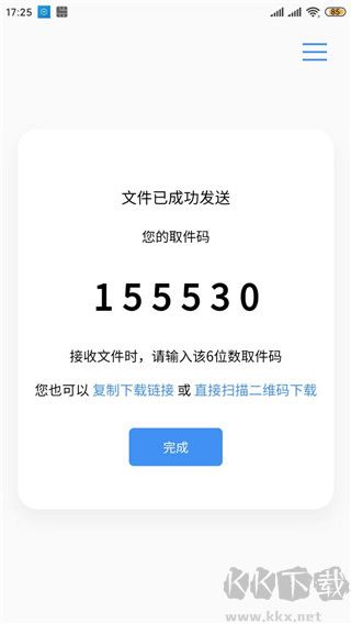 5、在其他手机或电脑上点击接收,输入取件码即可下载文件。