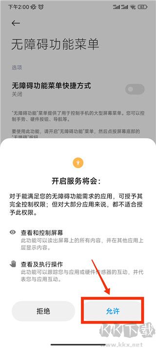 3、在通用页面找到无障碍功能菜单并点击进入;