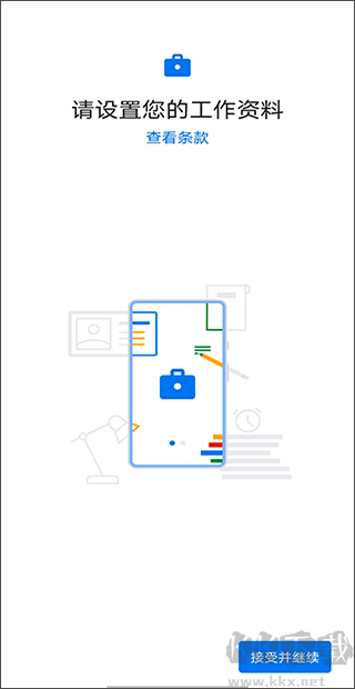 2、然后根据提示创建工作资料空间,直接点击下方的“接受并继续”即可;