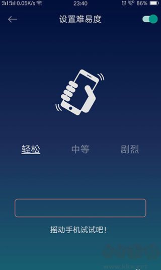 6、点击起床摇手机挑战即可设置,挑战有三类,轻松、中等、剧烈