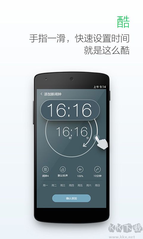 2、酷:手指滑动快速设置时间,操作炫酷高效;