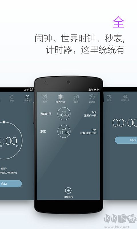 4、全:集闹钟、世界闹钟、秒表、计时器于一体;