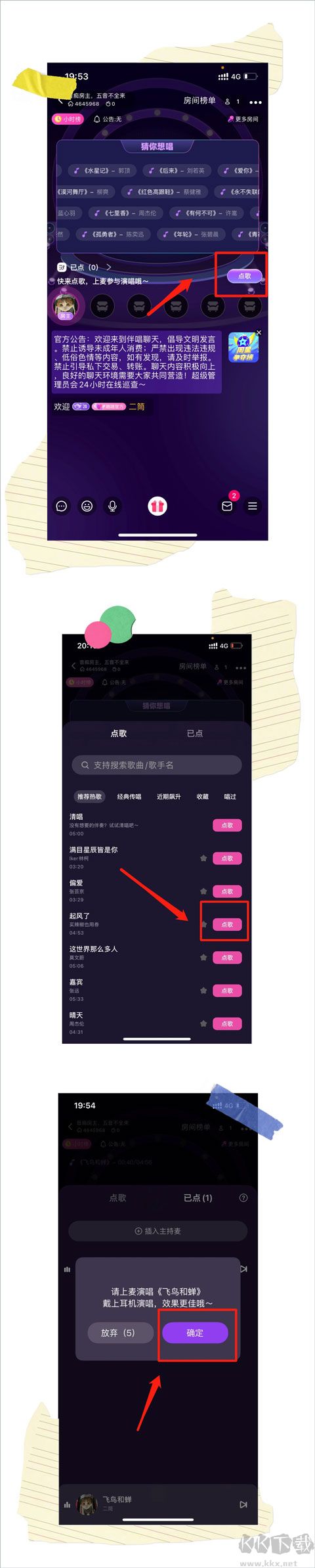 房间创建成功后,就需要涉及到怎么使用啦,按照下面的流程就可以轻松掌握、畅享K歌!
