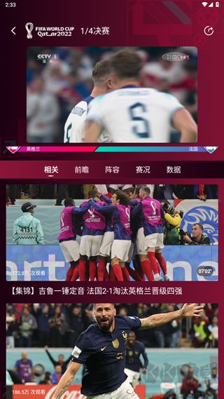 3、点击回看,你可以观看错过的世界杯赛程直播;