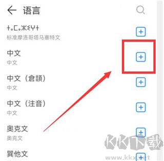 4、进入到“小艺输入法”的详细设置页面,因为“小艺输入法”默认只添加了英文,我们这里要点击“语言”,向下拉,找到中文,点击右侧的+号,就可以把中文添加到输入法。