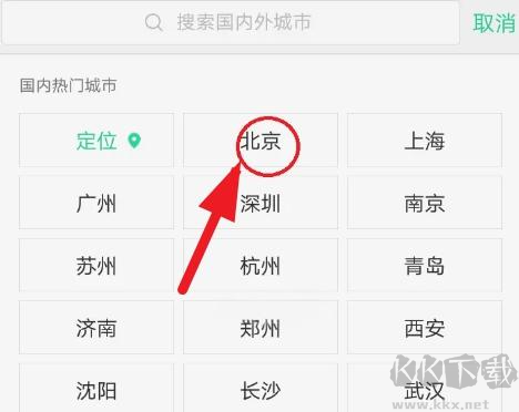 5. 在搜索栏键入目标城市名称,点选城市即可完成更换
