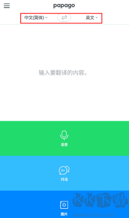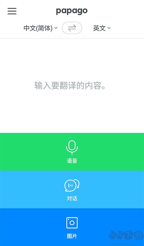 1、启动Papago翻译工具,主界面显示三大核心翻译模块。