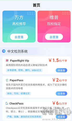 1、启动论文降重助手,主界面可查阅各类重复率检验服务。