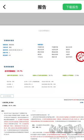 4、查看文稿相似度数值,可操作界面右上角按键,获取分析文档。