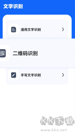 2、文字提取功能界面细分为常规文字辨识、二维码识别与手写体解析。
