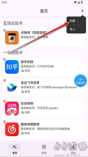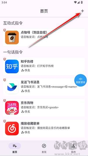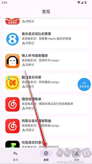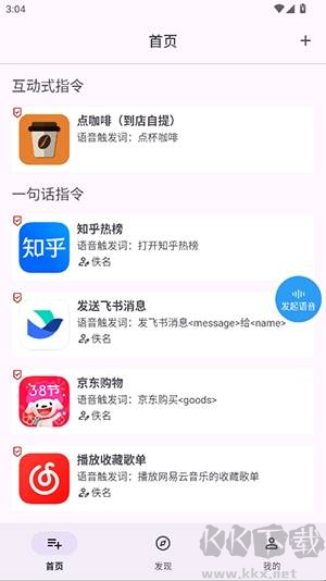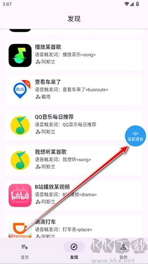 5、轻触"发现"选项,可查看众多示例语音指令词。