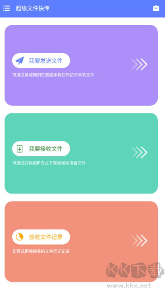 1、启动超级文件快传,主界面集成多种文件接收入口。