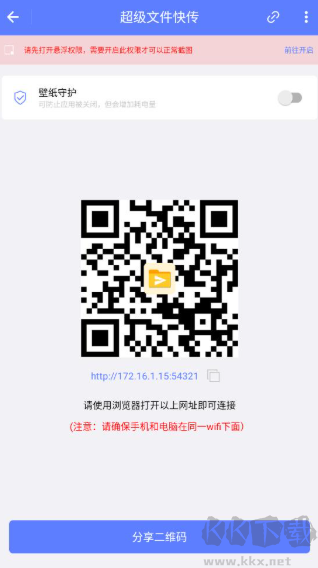 2、选择接收文件功能,可通过IP地址或二维码获取资料。