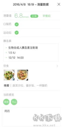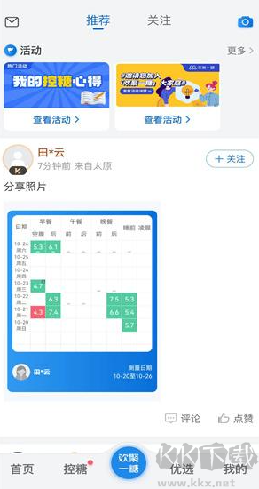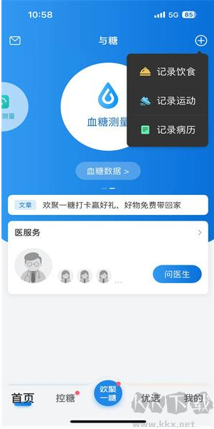 1、启动与糖医护,进入主界面后轻触右上角加号图标选择记录饮食功能。