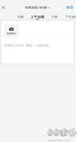 2、在此可输入早餐、午餐、晚餐详情,并可添加图片辅助记录。