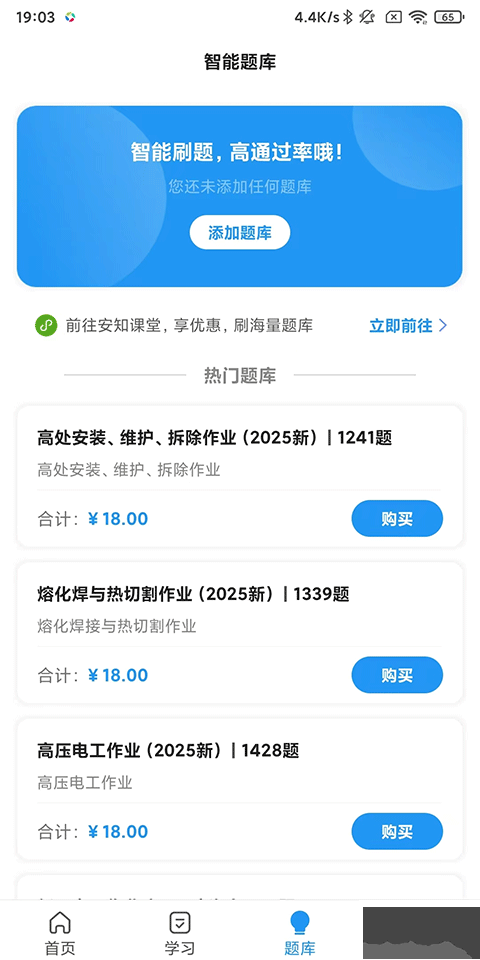 3、智能题库:添加题库,开始刷题,巩固课堂知识;