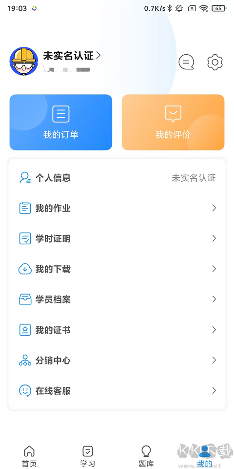 4、我的:查询个人信息、我的作业、学时证明、学员档案、我的订单等个人服务功能。