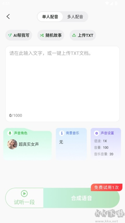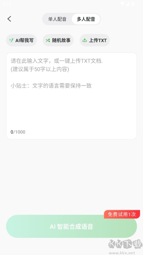 1、智能文字转语音:支持多语种转换与播报,提供多样音色选择。