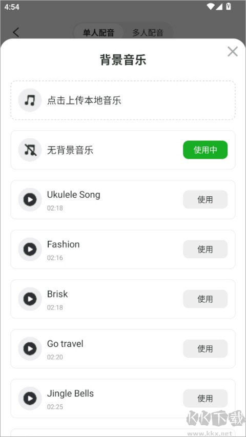 5、可添加伴奏音乐,选择网络曲库或本地音频文件。