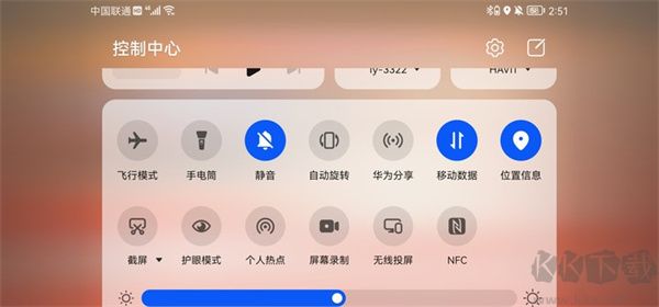 2、然后我们下拉手机菜单栏,开启“投屏”按钮。
