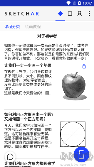 3、进入后有多类教程可选,点击即可,以“苹果绘制”为例