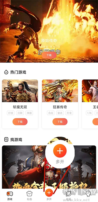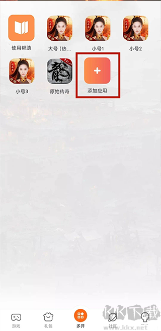 2、添加应用:进入多开作用页面后,点击【+】号添加按键。
