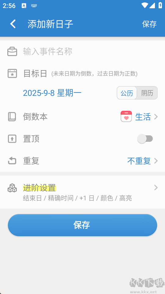 倒数日是一款功能实用、界面简洁的日期管理工具,它不仅提供常规日历查看,还可以帮助用户记录各类节日、纪念日、亲友生日等重要日期,只需要提前设置好时间,应用就会以倒计时方式主动提醒,避免因遗忘而错过重要时刻。