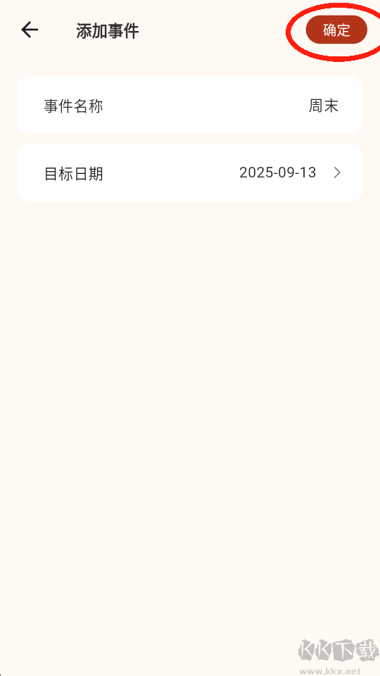 2、输入事件名称并选择日期,点击“确定”保存