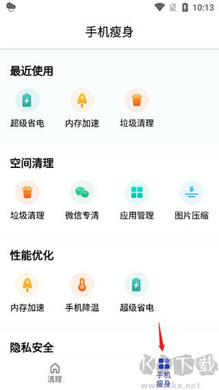 5、在手机瘦身里为这些功能进行了详细的分类,想进行哪种清理就可以点击开始清理哦!