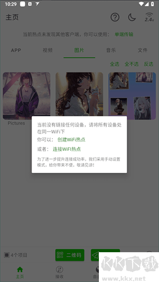 选择完成后,如果是单端连接,只有一端有面对面快传软件,可以让对方扫描二维码,或者浏览器内输入链接,就能浏览网页版的面对面快传进行传输;